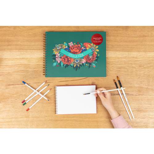 Ces carnets à dessin Frida Kahlo au format paysage avec reliure spirale allient la qualité reconnue de Clairefontaine à un design artistique unique. Ils contiennent un papier à dessin blanc de 180 g/m², fabriqué dans les Vosges, avec une surface satinée idéale pour les techniques Mixed Media : crayon, encre, feutre, aquarelle légère ou gouache. Grâce à la spirale, les pages se tournent facilement et s’ouvrent à plat pour un confort de travail optimal.