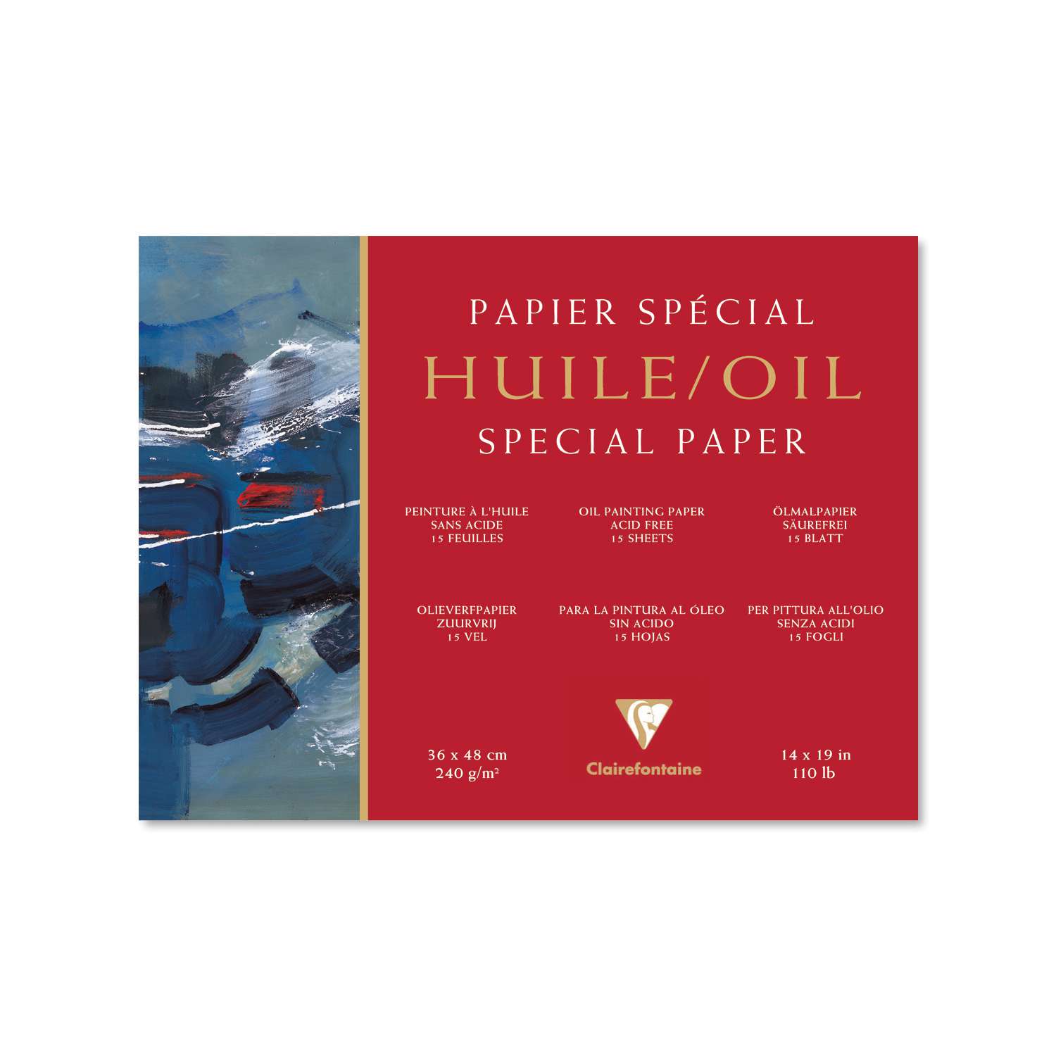 Papier spécial Huile Clairefontaine. Nommé d’après son usage, ce bloc de papier Clairefontaine est dédié à la pratique de la peinture à l’huile, forte en solvants. Pour cela, il bénéficie d’un grammage de 240 g/m², d’un grain proche d’une toile de lin fine, et surtout d’un traitement en surface adapté.