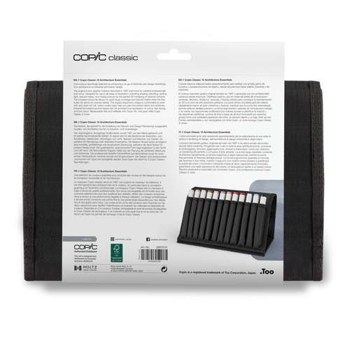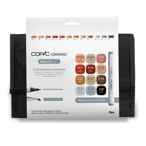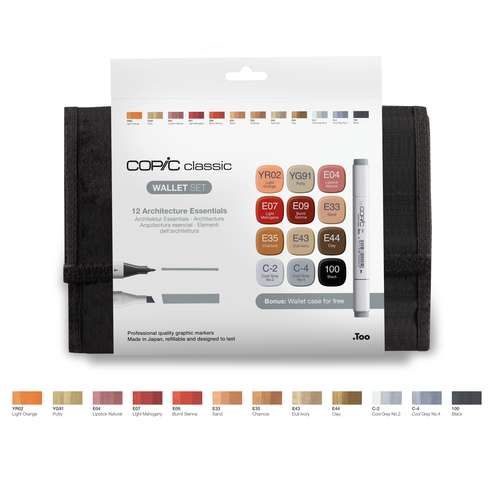 Cette trousse de 12 marqueurs Sketch Copic « Architecture » est parfait pour les graphistes, illustrateurs, designers et artistes. Avec 12 couleurs soigneusement choisies (11 couleurs + noir), il permet de représenter avec précision tous types de thèmes architecturaux. Le set est présenté dans un wallet pratique en polyester résistant et lavable, pouvant contenir jusqu’à 24 marqueurs pour un rangement et un transport faciles.