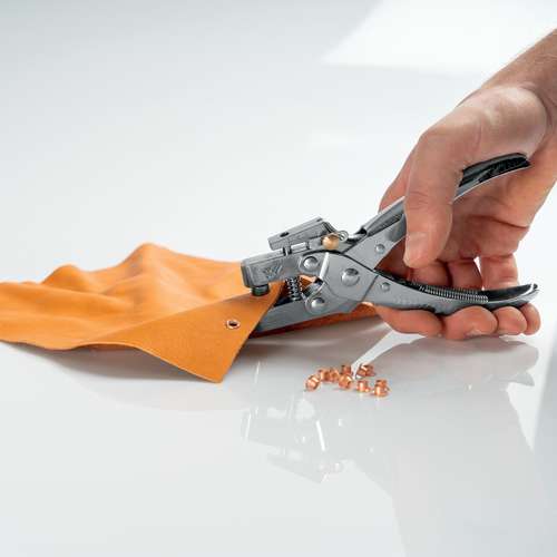La pince à œillets Rapid RP05 est lparfait pour poser facilement des œillets de 4 mm sur des textiles, cuir, papier, carton et autres matériaux flexibles. Son acier chromé robuste et ses longues poignées garantissent un usage précis et efficace, même pour des matériaux plus épais.