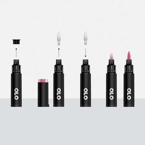 Il s'agit d'un choix et concept unique. Un demi-marqueur OLO contient 2 ml d'encre à alcool, soit plus de 90% d'encre utilisable en plus que les autres marqueurs.