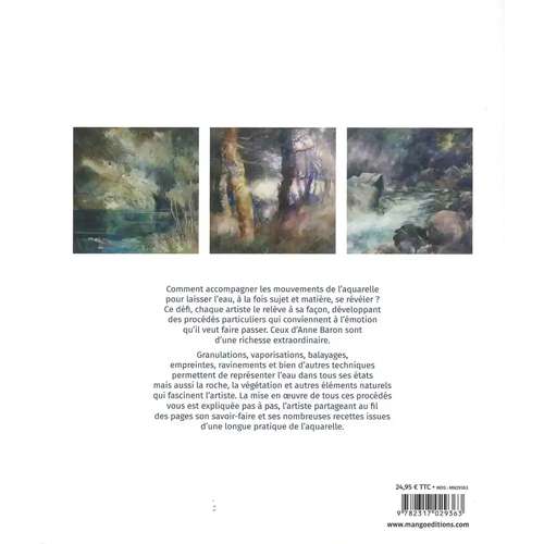 Comment accompagner les mouvements de l'aquarelle pour laisser l'eau, à la fois, à la fois fluide et imprévisible, se révéler pleinement ? Chaque artiste explore des techniques qui traduisent au mieux son ressenti. Anne Baron partage ici son approche unique, riche en effets variés : granulations, vaporisations, balayages, empreintes, ravinements…