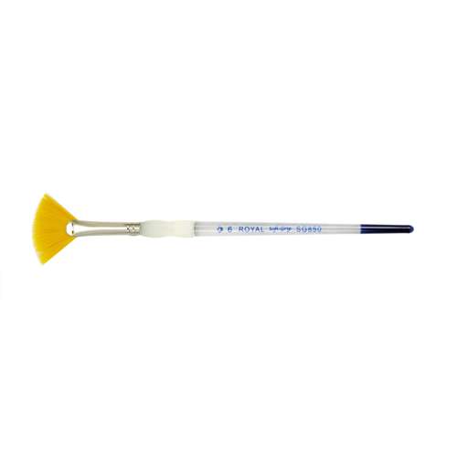 Le pinceau éventail Soft-Gtip™ SG850 de Royal & Langnickel® est doté de poils synthétiques Taklon dorés, légèrement plus souples, parfaitement adaptés à la peinture à l’huile, l’acrylique ainsi qu’à l’aquarelle.
