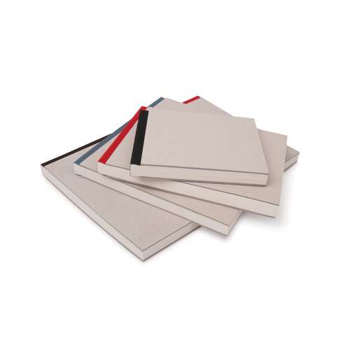 - Reliure en papier gris recouvert d’une bande de lin noire, rouge, bleue ou grise Fabrication sans acide ni bois