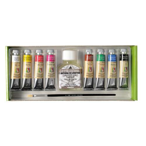 - Set complet : 8 tubes de gouache, 1 flacon de fixatif 75 ml, 1 pinceau synthétique
