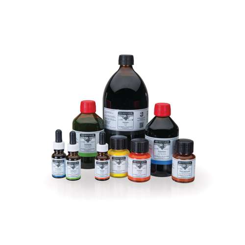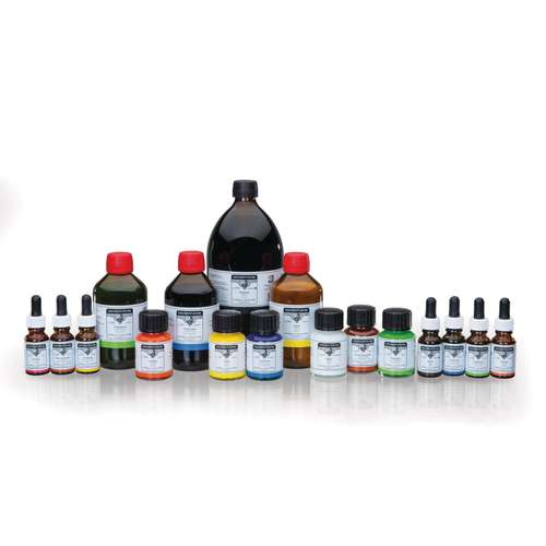 Les 24 couleurs du nuancier ci-dessous sont disponibles en flacon de 50 ml, 22 couleurs en flacon de 250 ml, ainsi qu’en mini-flacon de 12 ml avec pipette.