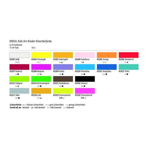 Offrez à vos enfants l’expérience d’un véritable atelier avec les peintures Kreul Kids Art. Ces couleurs liquides en tube sont spécialement conçues pour les jeunes artistes et s’appliquent facilement au pinceau sur papier, carton ou toile.