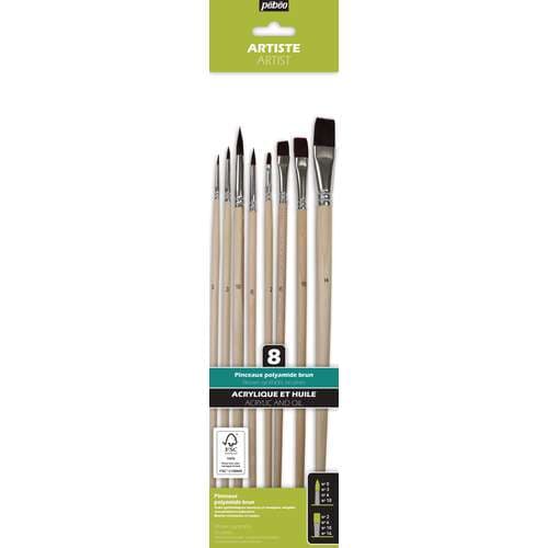 - 8 pinceaux en fibres synthétiques polyamide brunes :