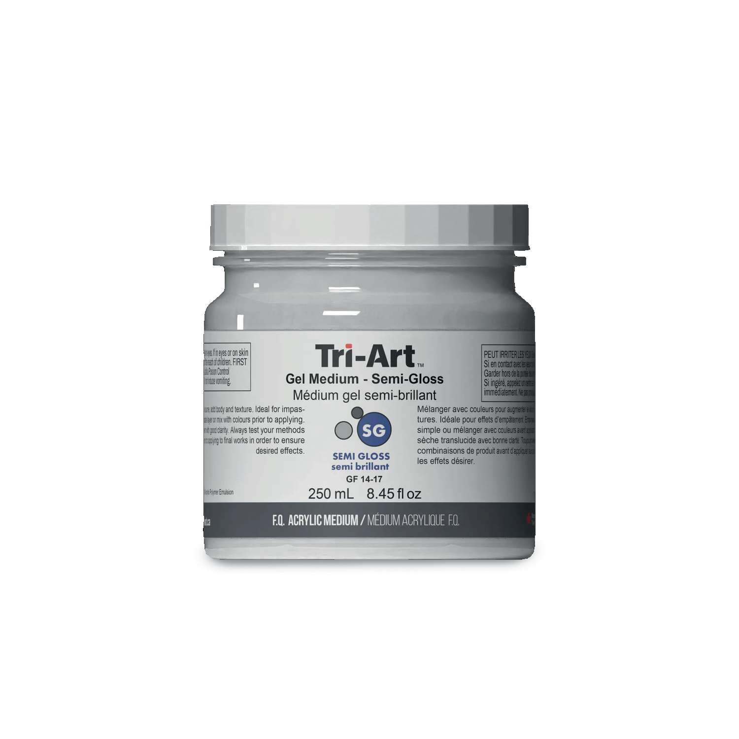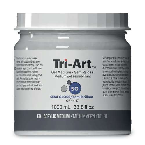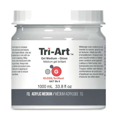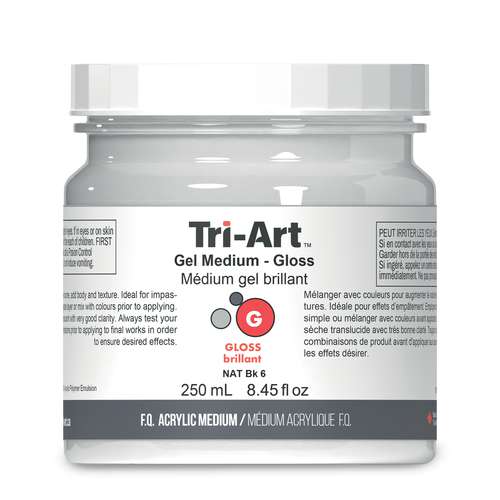 Disponible avec un rendu brillant, semi-brillant ou mat, ce gel Tri-Art convient à la création de glacis, impasto, collages et pour le mixed media.