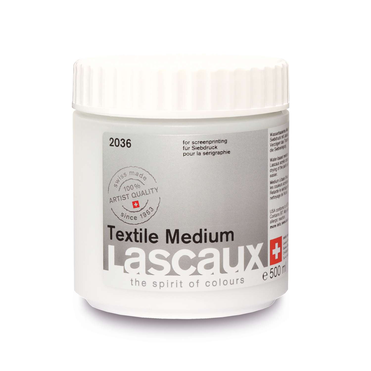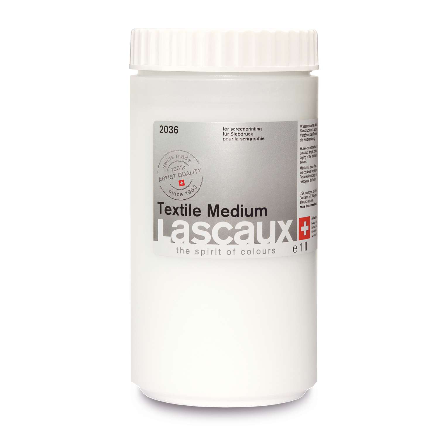 Le médium textile Lascaux facilite la sérigraphie professionnelle sur tissus. Que ce soit pour T-shirts, sacs, textiles d’intérieur ou toiles, il permet de créer des impressions intenses, durables et lavables lorsqu’il est utilisé avec les peintures Lascaux.