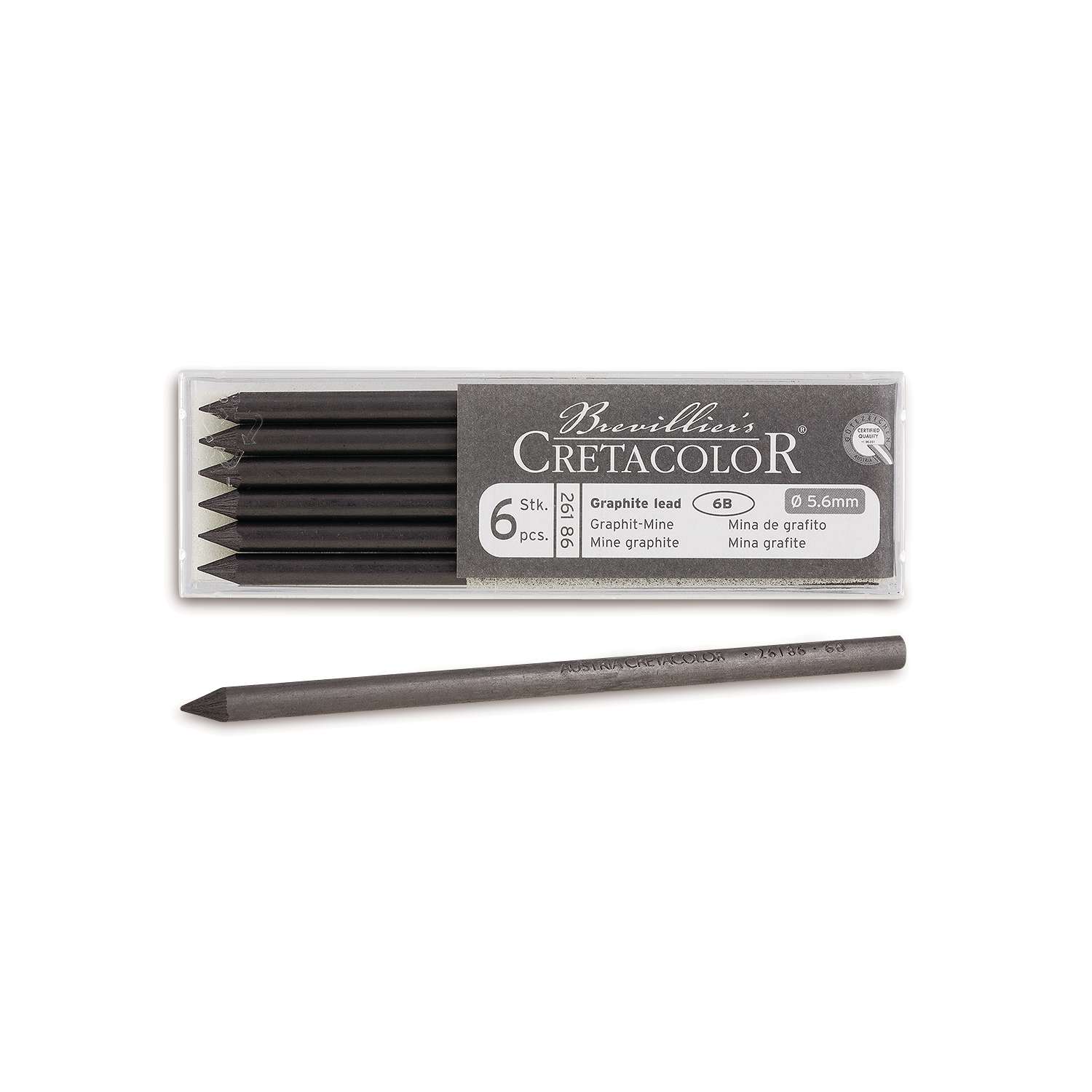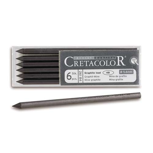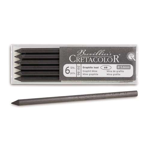 Mine graphite : Diamètre: 5,6 mm, longueur: 120 mm. Etui de 6 mines. Disponible dans différentes duretés.