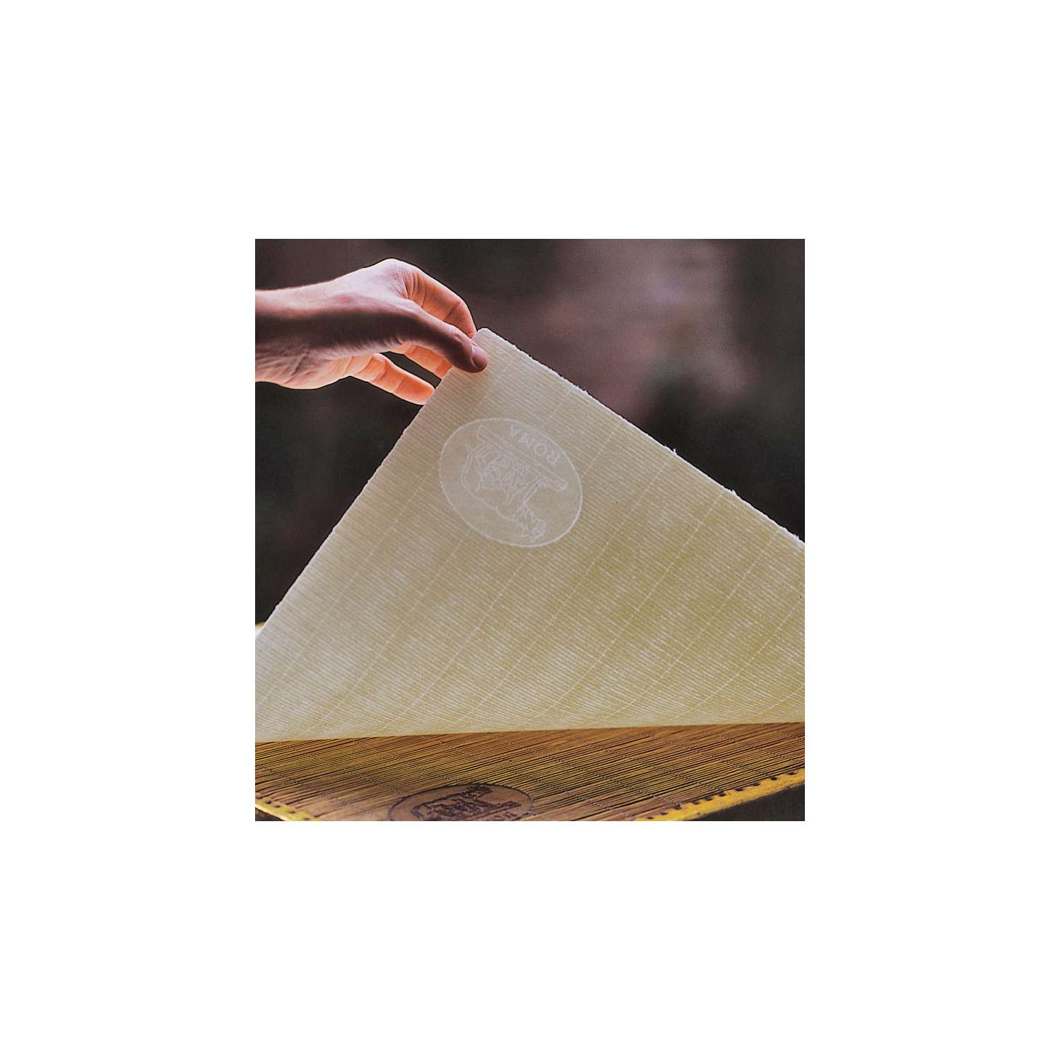 Dit handgeschepte ROMA drukpapier van FABRIANO® wordt gemaakt van 100% katoen. Het heeft een watermerk en een scheprand aan alle vier de zijden.