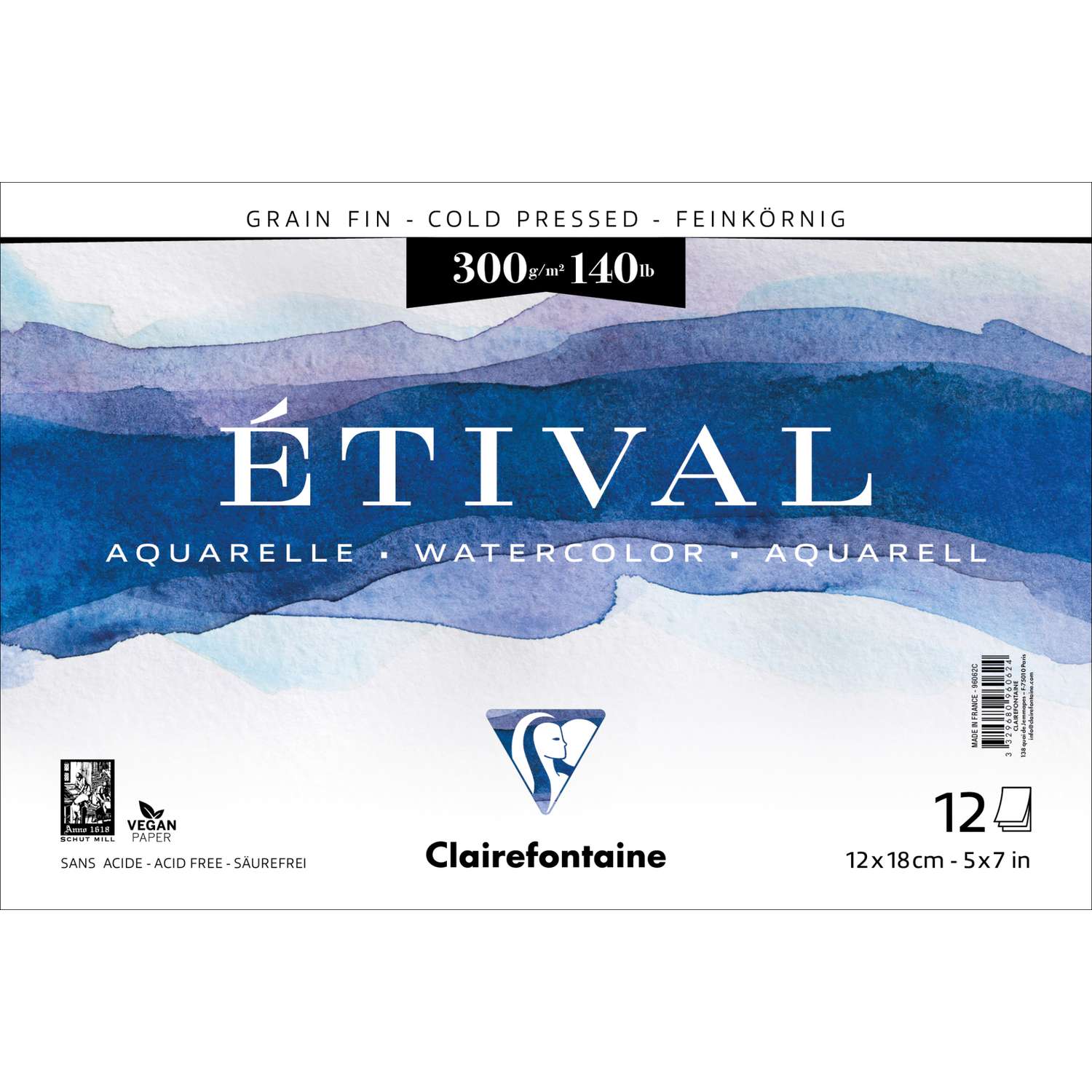 Omdat zijn papier speciaal is ontwikkeld voor het aquarelleren, is de Clairefontaine aquarelblok ETIVAL prinipieel optimaal geschikt voor alle natte technieken. Inhoud 12 vel. Verkrijgbaar in verschillende formaten.