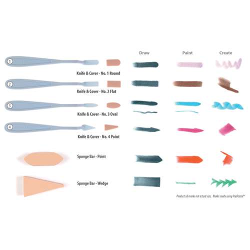 Deze speciaal voor de PanPastel® Ultra Soft kunstenaarspastel ontwikkelde paletmessen worden samen met 5 microporeuze, semi-absorberende opzetsponsjes geleverd. Ideaal voor het opbrengen en mengen. Grote vlakken zijn in sekonden te vullen.