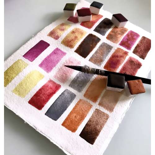De aquarelverf Rêves d’Aquarelle wordt vervaardigd op traditionele manier, met extra fijne minerale of organische pigmenten.