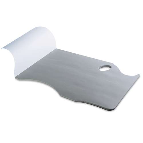 Blok pallet, klassieke of rechthoekige vorm met gat voor handgreep.