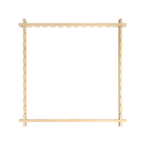De lijst met inkepingen van Pebaro is geschikt voor batik en verf op zijde. spaties van 45 mm om de stof vast te hechten. Twee versies beschikbaar, kaderlengte van 106,5 cm met maximum breedte van van 99,5 cm. Een kleinere versie met een kaderlengte van 74 cm en maxium breedte van 67,5 cm. Stabie...