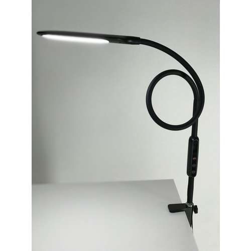De tafellamp is ergonomisch ontworpen, met een super-flexibele arm — zoiets noem je een zwanenhals — waardoor je ’m 360º kunt draaien en werkelijk in elke positie kunt fixeren.