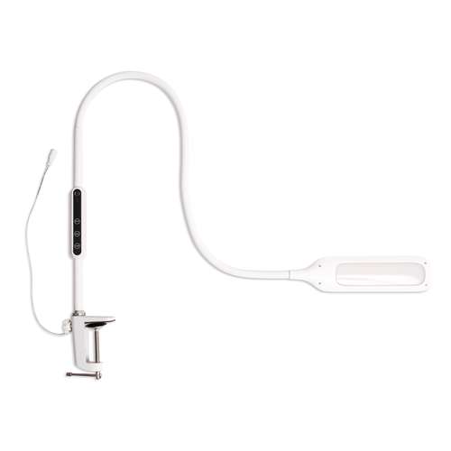 Het licht van deze tafellamp kun je dimmen in vijf standen. Ook kun je de kleurtemperatuur kiezen — van 2.700 tot 6.500 Kelvin, bij 690 lumen. Door z'n 360º zwanenhals is deze lamp ook super-flexibel. Met afstandsbediening. Meer