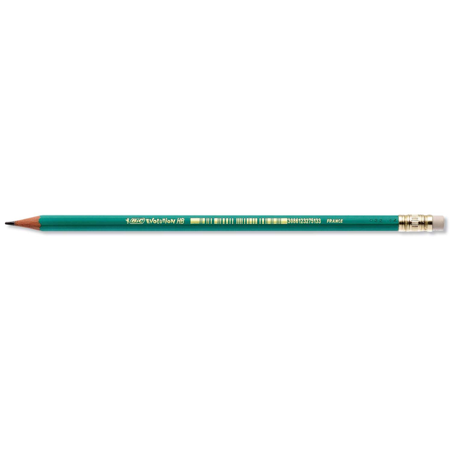 Het ECOlutions® EVOLUTION® 655 grafietpotlood van BIC® is houtvrij: de schacht is gemaakt van kunsthars (57% recycled), dat niet splintert of splijt. Die schacht is zeshoekig — dat geeft een comfortabele grip én voorkomt dat het potlood van de tafel rolt.