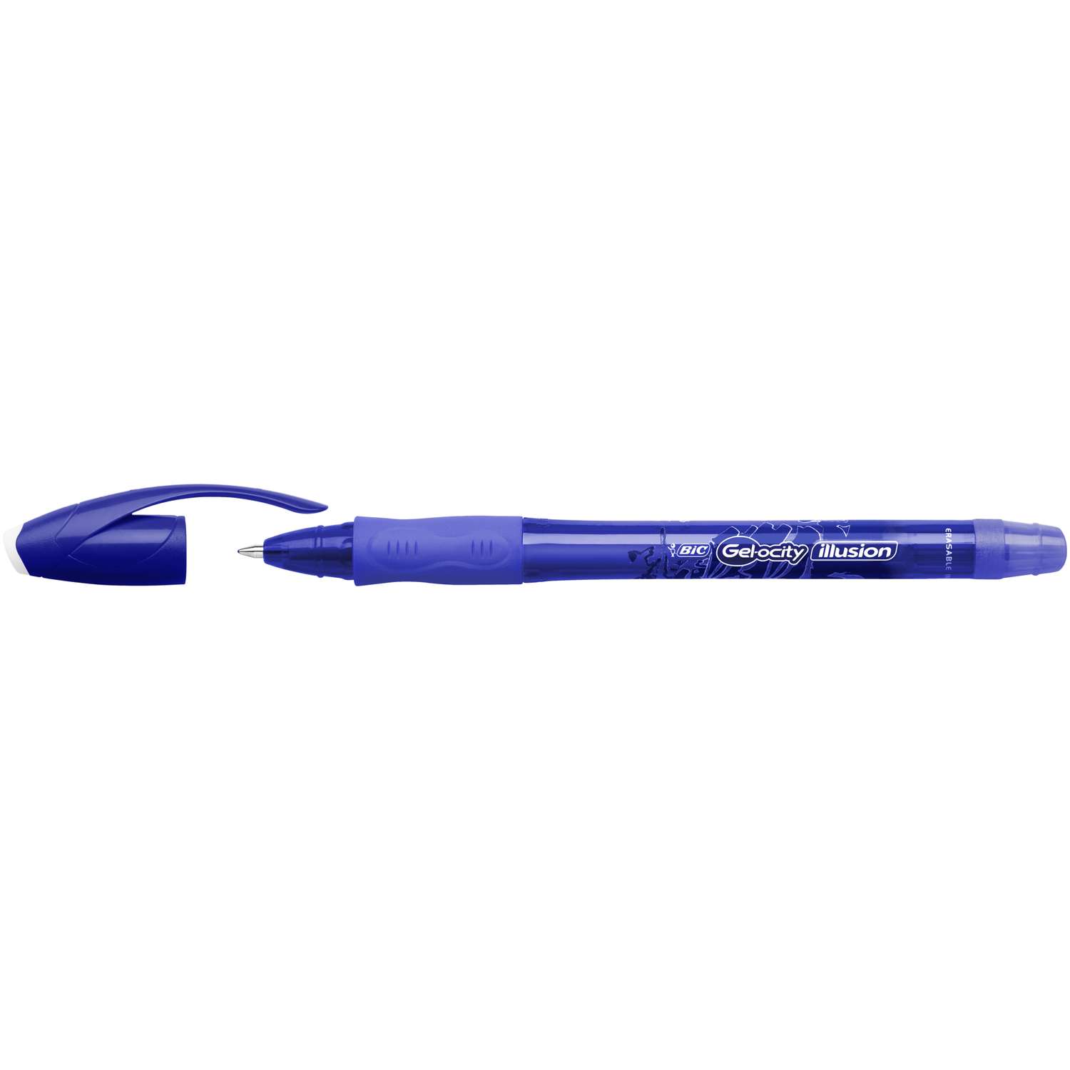 De BIC® Gelocity Illusion is een ideale pen met gelinkt vulling die zowel geschikt is voor kinderen en ook volwassen. Kleine schrijffoutjes kunnen door gummen meteen en schoon worden gecorrigeerd. Door speciale thermosgevoelige technologie is de inkt verwijderbaar. De gelpen is navulbaar, heeft een rubberen soft grip, en een knopje en mechanisme om de punt in het omhulsel te laten verdwijnen. Voorzien van een praktische clip clip om de pen ergens aan vast te klikken en een stevige punt van edelstaal.