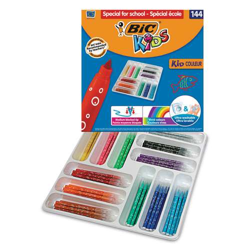 De BIC® Kids COLEUR viltstift is dankzij zijn water oplosbare inkt en stevige punt uitstekend geschikt voor gebruik door kinderen.Overzicht eigenschappen van de BIC® Kids COLEUR viltstift:Stralende en duidelijke kleurenInkt op waterbasisinkt is makkelijk met water te verwijderen, ook van ...