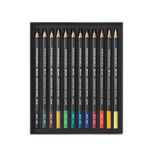 Deze professionele potloden zijn uitermate geschikt om ermee te aquarelleren en ze zijn met water mengbaar (goede oplosbaarheid). Verkrijgbaar in 3 verschillende assortimenten met 12, resp. 20 aquarelpotloden uit de Caran d`Ache serie "Museum".