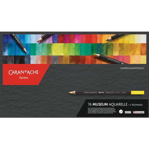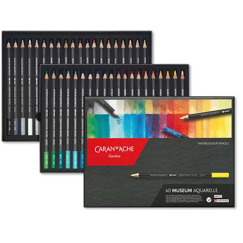 Verschillende CARAN d'ACHE® MUSEUM sets met aquarelpotloden. Alle e kleurpotloden bevatten en bijzonder hoge pigmentconcentratie en garanderen grote kleurintensiteit en buitengewone lichtbestendigheid. Diameter 3,8 mm, met water vermengbaar en gemaakt van eersteklas cederhout.