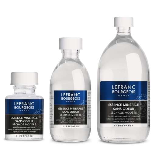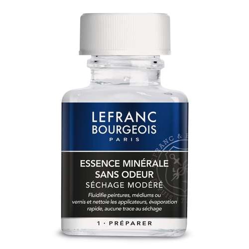 Lefranc & Bourgeois geurarm oplosmiddel verkrijgbaar in een fles van 75ml, 250ml of 1L.Te gebruiken als petroleum essence. Prijs per fles.