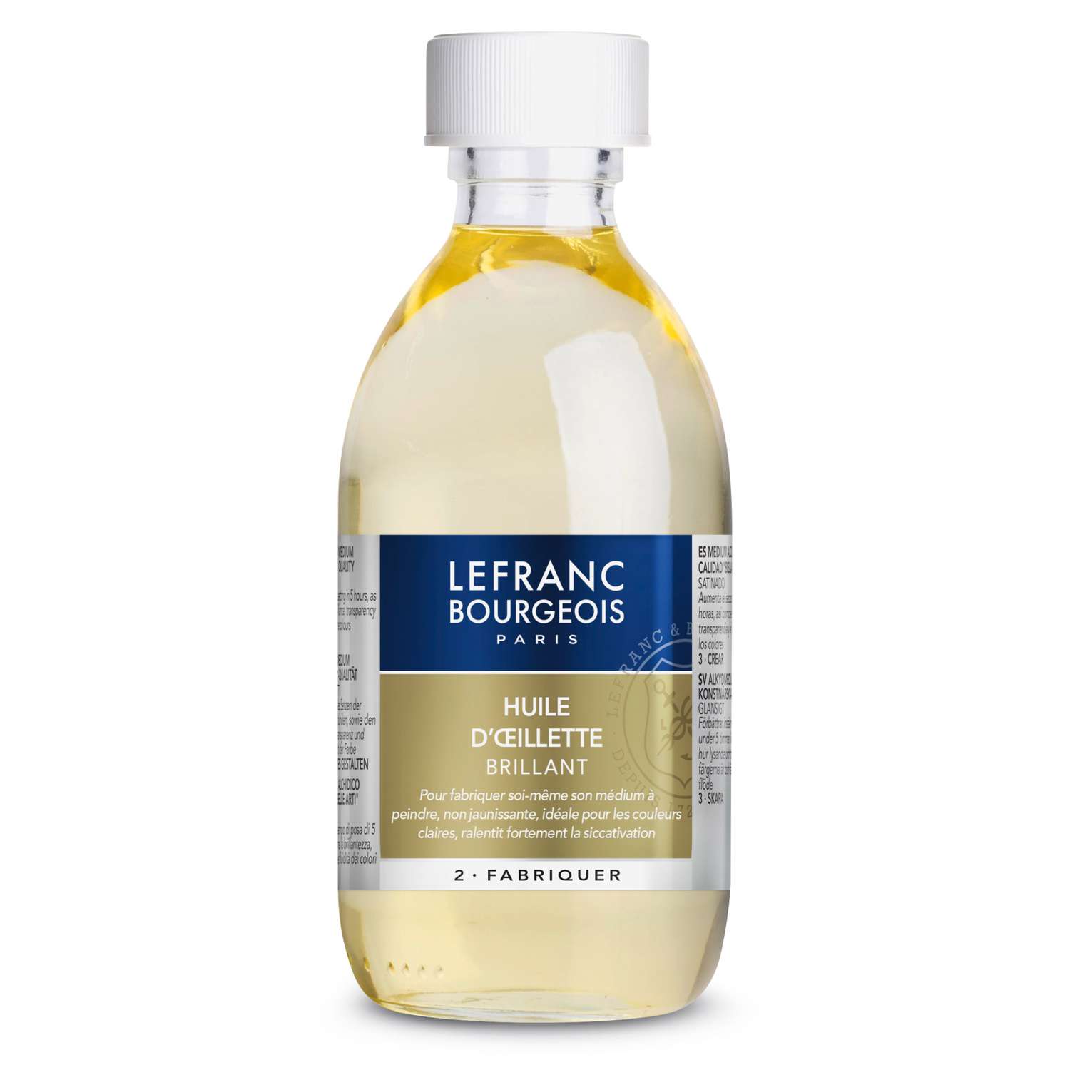 Lefranc & Bourgeois papaverolie is een langzaam drogende olie die als voordeel heeft dat ze tijdens het drogen, in tegen stelling tot lijnolie, niet verkleurd en daarom geschikt is bij het gebruik van lichte kleuren. Bevat geen siccatief.Verkrijgbaar in een fles van 75ml of 250ml. Prijs per f...