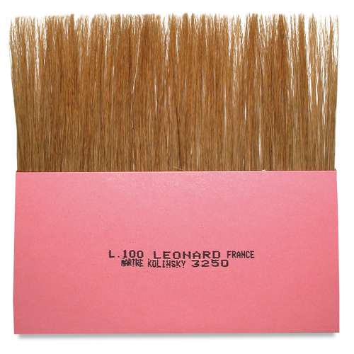 Het extra-fijne Kolinsky roodmarterhaar is ca. 50 mm lang en plat gevat in een dun kartonnen heft.