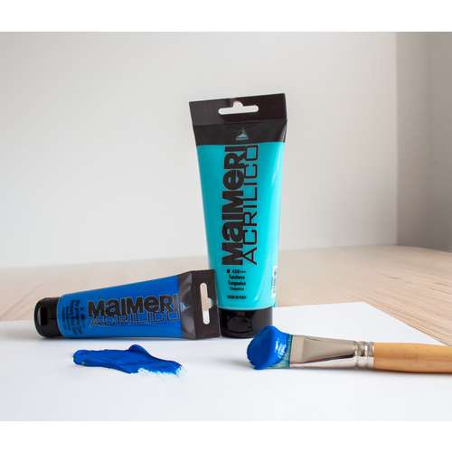 Maimeri Acrilico est une peinture acrylique super-fine avec une palette de 88 couleurs vives et brillantes, dont 5 métalliques, 1 phosphorescente et 4 fluorescentes. Grâce à une formulation innovante, 44 couleurs sont conçues avec un seul pigment pour garantir une teinte pure et intense. Cette peinture acrylique, souple et résistante, est idéale pour toutes les techniques, qu’il s’agisse d'applications en fines couches ou de travail en épaisseur à la spatule.