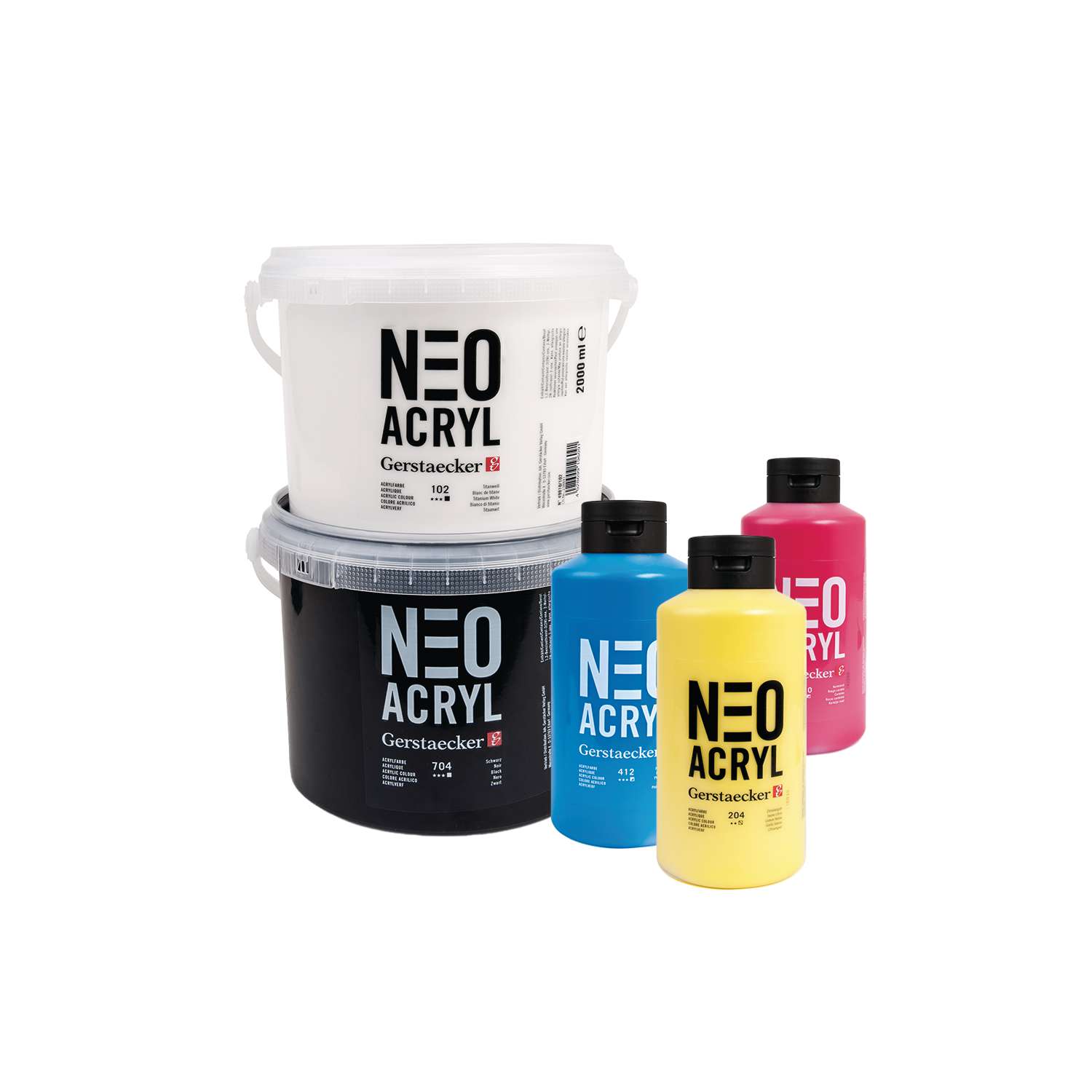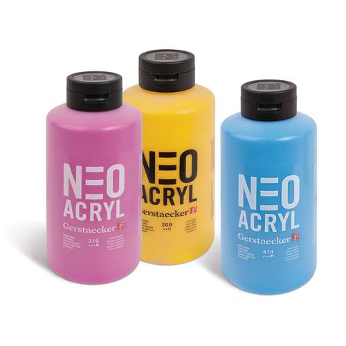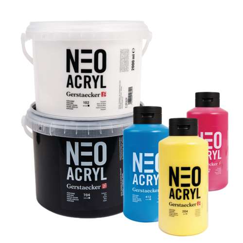 L'Acrylique Neo Acryl Gerstaecker convient à presque tous les supports non gras : papier, toile, carton, bois, métal, pierre et plastique entre autres. Vous apprécierez ses qualités pour vos créations picturales. Elle est idéale pour l’apprentissage de la peinture et les ateliers, la peinture acrylique Neo Acryl séduira également les artistes confirmés et professionnels par son remarquable rapport qualité-prix.