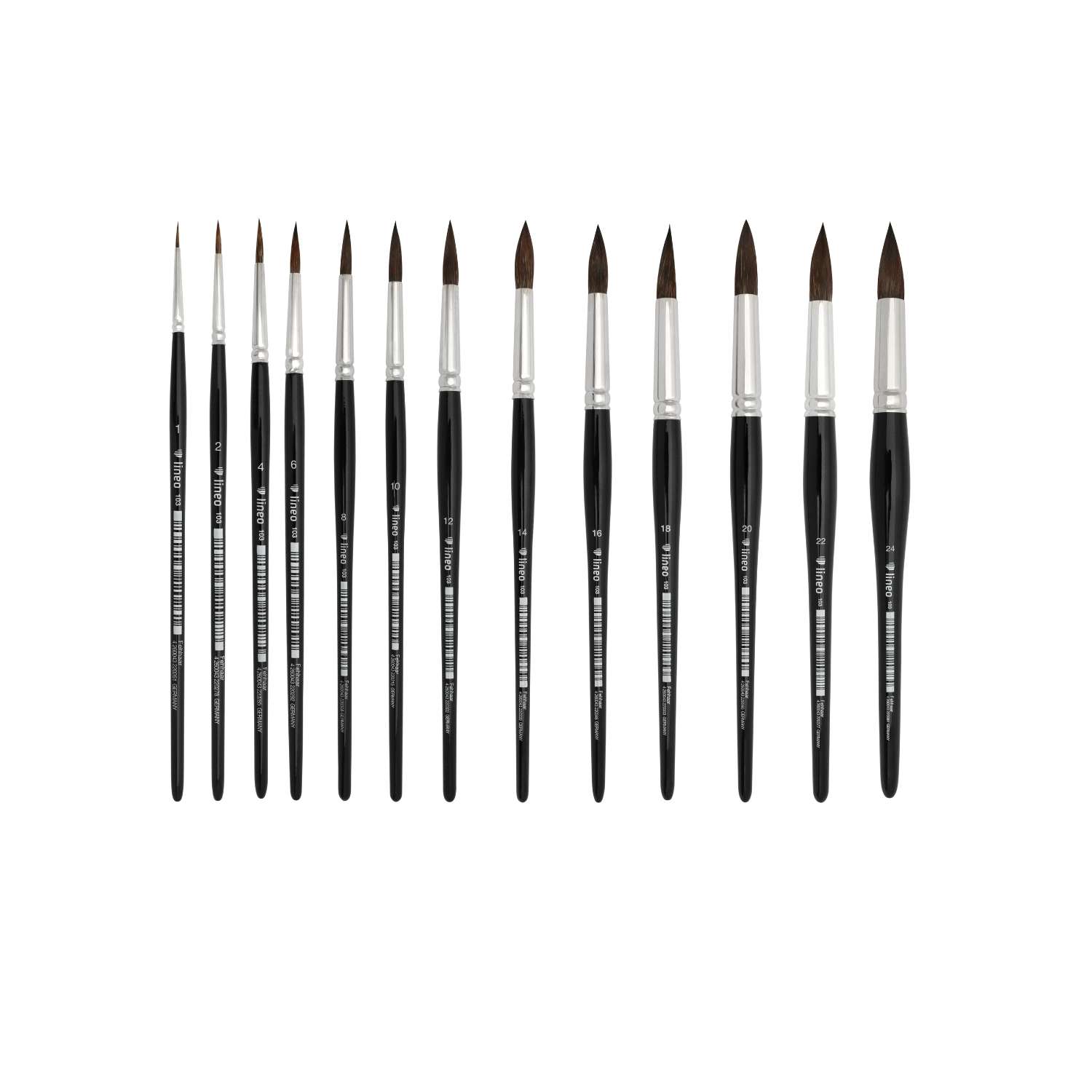 Pinceau aquarelle Lineo Série 103 en poils petit-gris précis et souple, idéal pour aquarelle, gouache et encre. Fabriqué à la main en Allemagne.