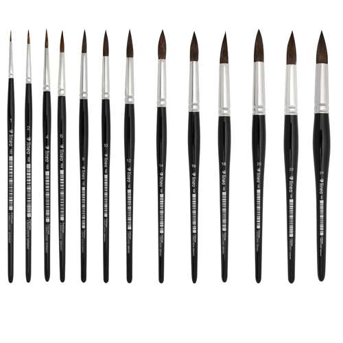 Le pinceau aquarelle Série 103 Lineo est conçu en poils de petit-gris doux et souples, offrant une grande capacité d’absorption de peinture et d’eau. Sa forme ronde avec une large « ventre » permet de stocker encore plus de peinture et d’eau, assurant un travail prolongé sans recharger le pinceau. La pointe fine et effilée garantit une précision maximale, idéale pour l’aquarelle, la gouache, et même l’encre.