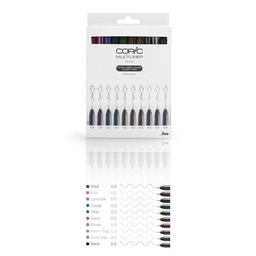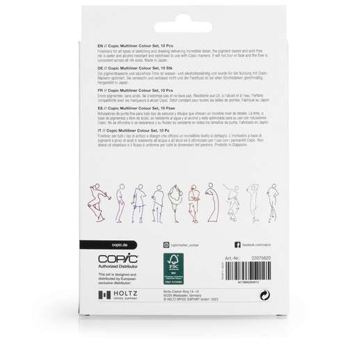 Grâce à leur pointe montée dans un embout métallique, les feutres offrent une excellente stabilité et une grande durabilité, même en cas d’utilisation intensive. Le set de 10 feutres Multiliner Copic est donc idéal pour dessiner des contours, des détails fins, des textures ou encore des lettres manuscrites.