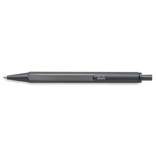 Stylo-bille Rhodia® en aluminium mat, design moderne, encre noire fluide, mécanique à clic et rechargeable pour usage scolaire, bureau et quotidien.