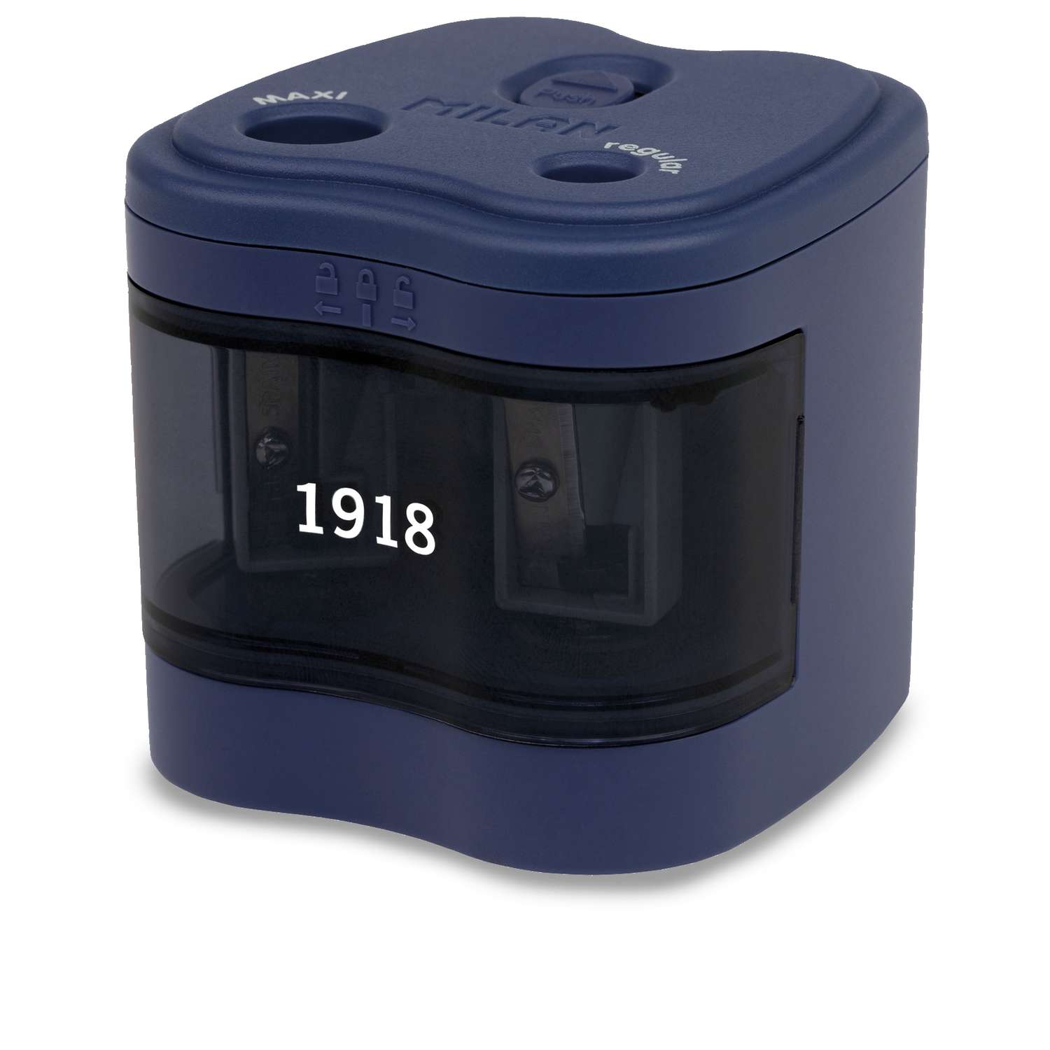 Le taille-crayon électrique double Milan possède un système de sécurité pour éviter d'éventuelles coupures ou accidents et un couvercle frontal amovible pour vider le réservoir.
